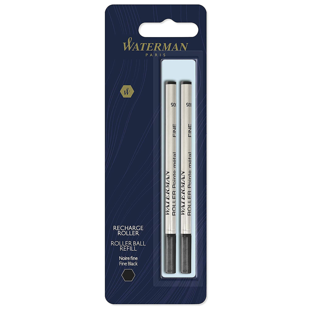 Lot de 2 recharges roller Waterman noires écriture fine.