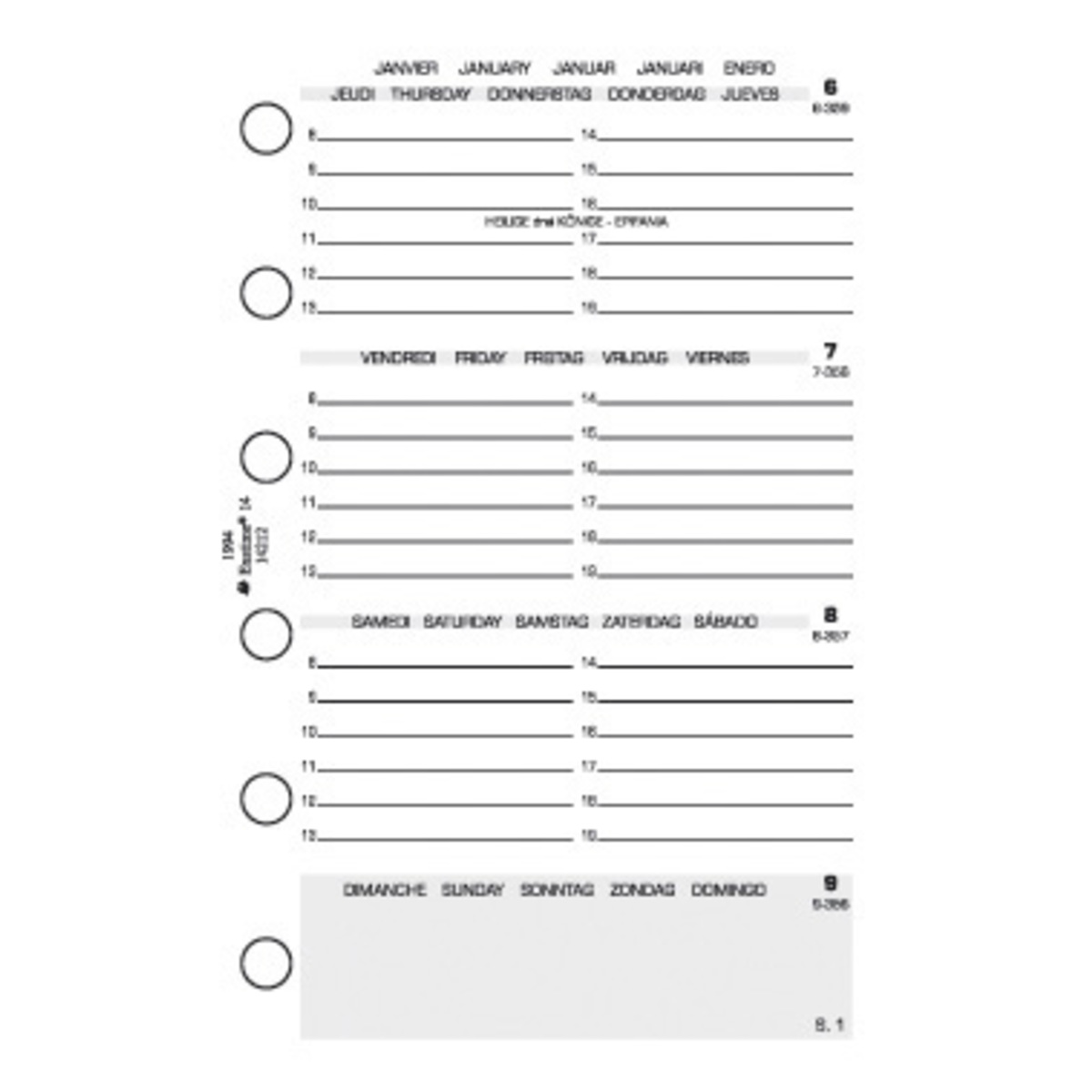 Recharge pour format 14. Semainier millésimé. 1 semaine sur 2 pages. Format : 166x81mm.