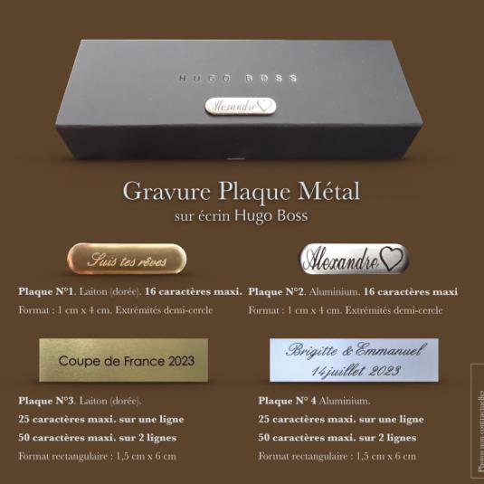 Un format et deux finitions possibles. Sélectionner le modèle de plaque, la typo et le texte en cliquant sur "GRAVURE + 15 euros".