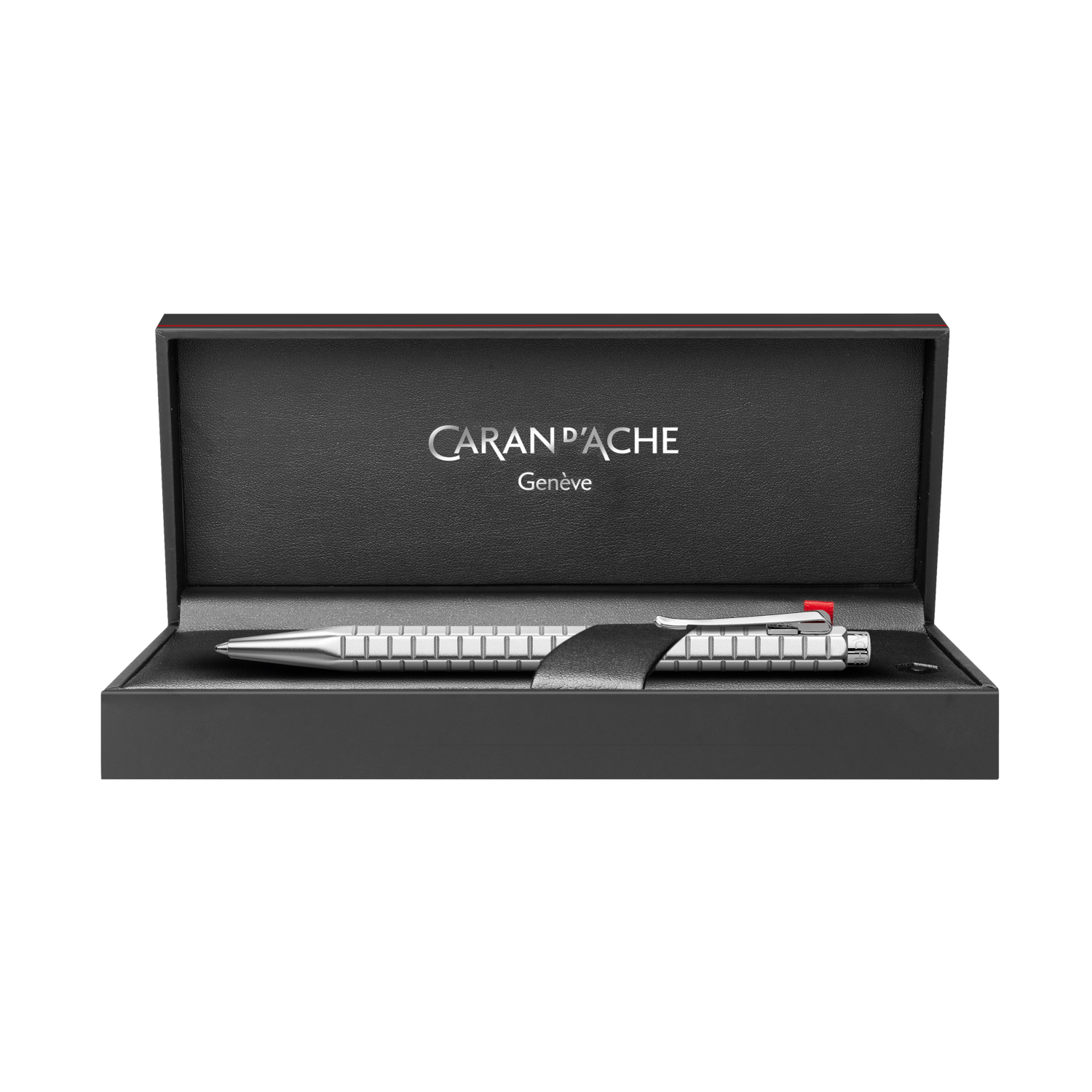 Association de matériaux nobles et d’un mécanisme d’une précision toute helvétique, l’Ecridor incarne depuis 1953 la synergie d’un style authentique et d’une efficacité contemporaine. Finement gravé pour le plaisir du toucher, il représente tout le savoir-faire de Caran d’Ache en matière de guillochage. Inspiré des Avenues de Genève, ce guillochage « Pavés » reflète élégance et modernité. Les artisans de la Maison se sont inspirés de ce motif qui représente aussi bien les Pavés de Genève que les maillons des bracelets des montres. La finition mate rend cet Ecridor ultra contemporain, faisant écho à l’esthétique horlogère et s’inscrit ainsi dans la durée.