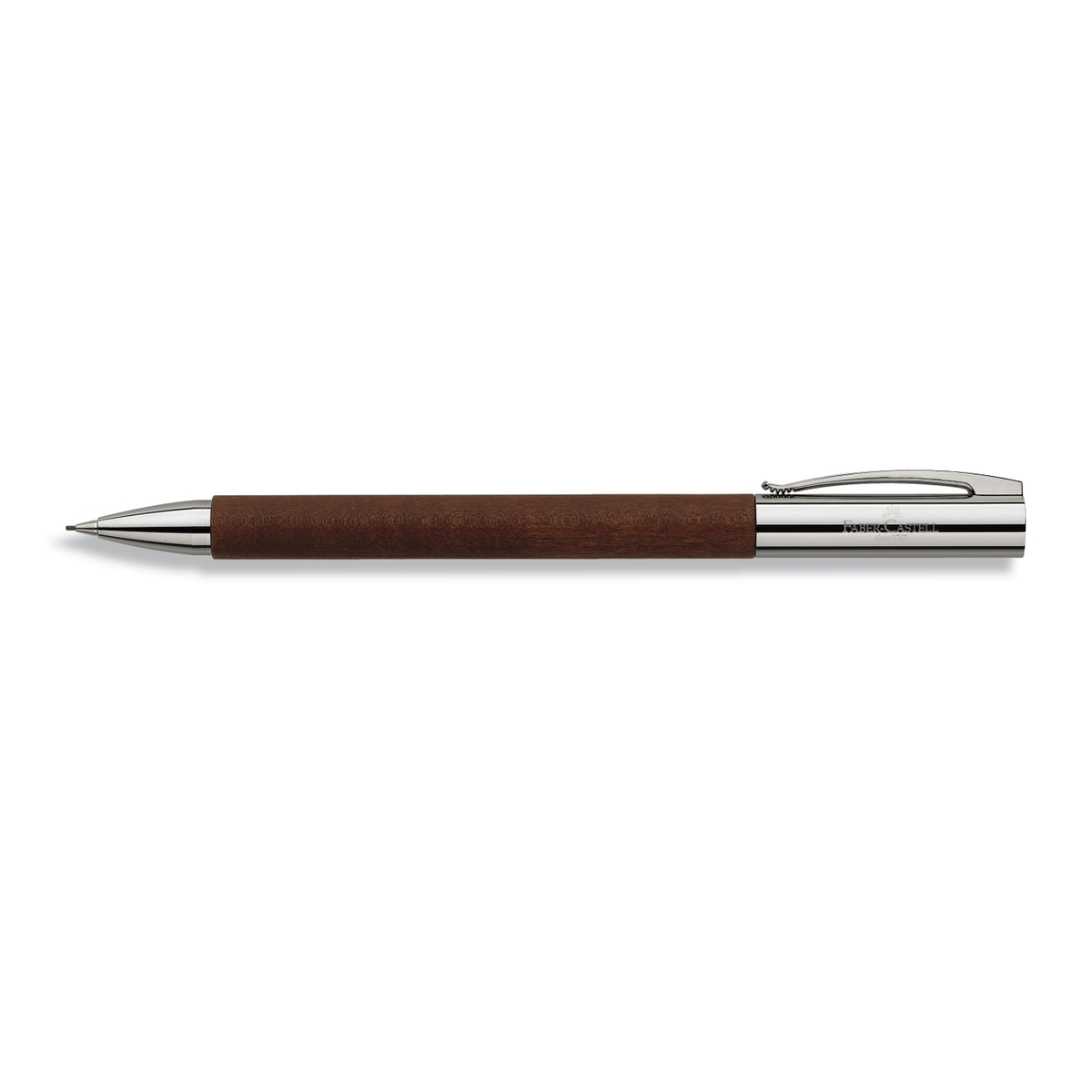 Portemine à mécanisme à rotation. Corps en bois de poirier. Mines 0,7 mm. Gomme dans le capuchon. Attributs chromés. Clip à ressort. Livré dans son écrin luxe et avec la garantie Faber-Castell.