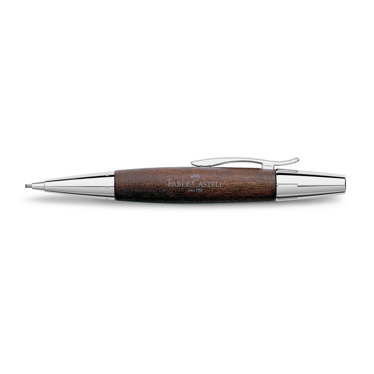 Stylo qui brille par son contraste intéressant de bois précieux de poirier et de métal chromé brillant. Grâce à la mine résistante au bris de 1,4 mm du porte-mine, il est très facile de varier la largeur de trait. Livré dans son écrin luxe et avec la garantie Faber-Castell.
