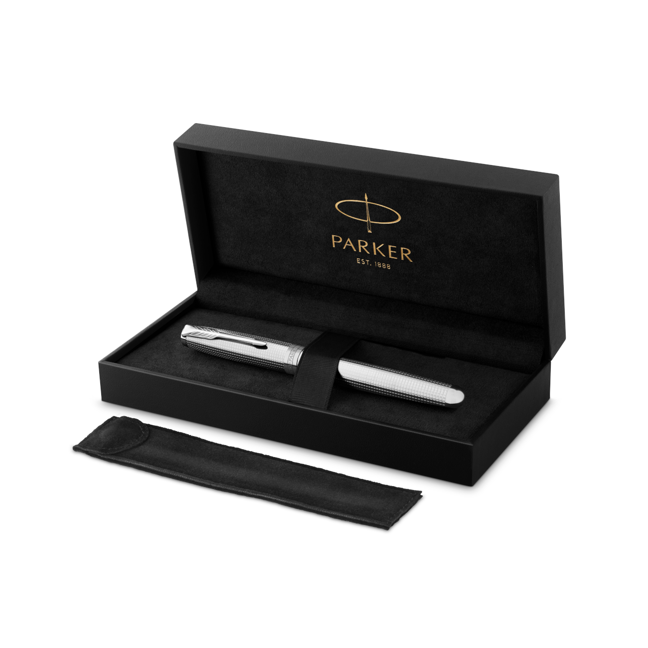 Dans la collection Sonnet Ciselé Édition Spéciale, vous découvrez le parfait croisement entre l’écriture raffinée et la joaillerie. Comme il se doit pour une telle beauté, chaque pièce est présentée dans une boîte- cadeau prestige Édition Spéciale au look cuir premium, noire, accompagnée d’un étui protecteur en tissu doux pour le stylo.