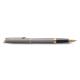 Corps et capuchon gris pierre finis en laque métallique, clip et finitions à double branche, recouverts d’un plaqué or clair