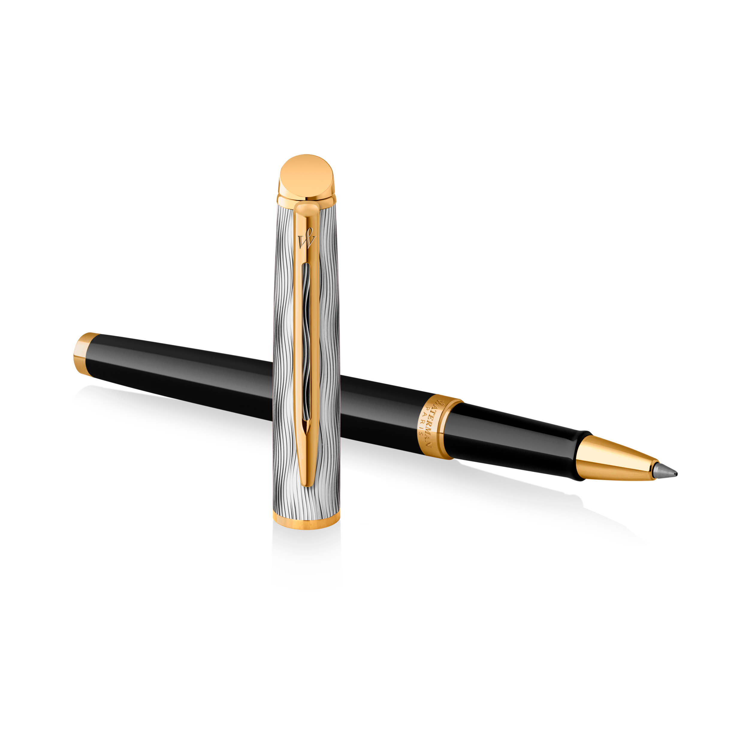 Le corps recouvert d’une laque noire et les finitions plaquées or des stylos Waterman Hémisphère évoquent le charme romantique d’un ciel étoilé parisien surplombant l’éclat doré des cafés et des avenues de la ville. Dans le même temps, le design de vagues exquis du capuchon finition palladium ciselé reflète les ondulations délicates de la Seine. La pointe du stylo roller, fabriquée avec un savoir-faire exceptionnel, allie la tradition de l’encre liquide au confort et à l’ergonomie. Chaque stylo est méticuleusement assemblé à la main en France, reflétant ainsi le savoir-faire français de Waterman.