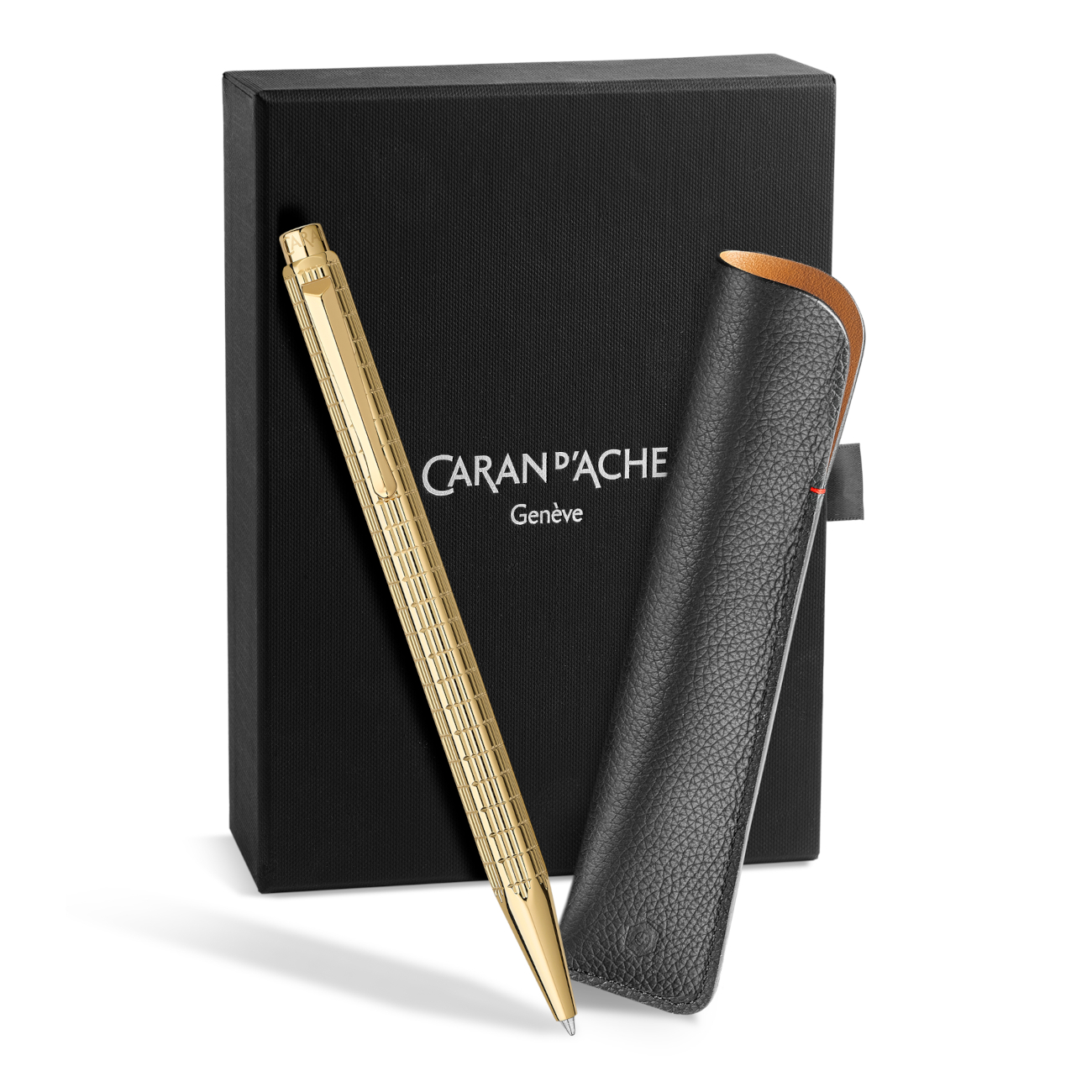 Stylo bille Caran d'Ache Écridor "Lights" doré avec étui cuir