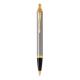 Fiable et professionnel, Parker IM est le partenaire idéal au potentiel illimité. A la fois intelligent, raffiné et constant il est constitué d'une plume acier résistante et d'un design qui reflète l'héritage Parker, chaque détail de cette collection permet d'offrir une expérience d'écriture à la fiabilité constante. IM Brushed Metal GT, un stylo laqué métallique brossé et au attributs couleur or.