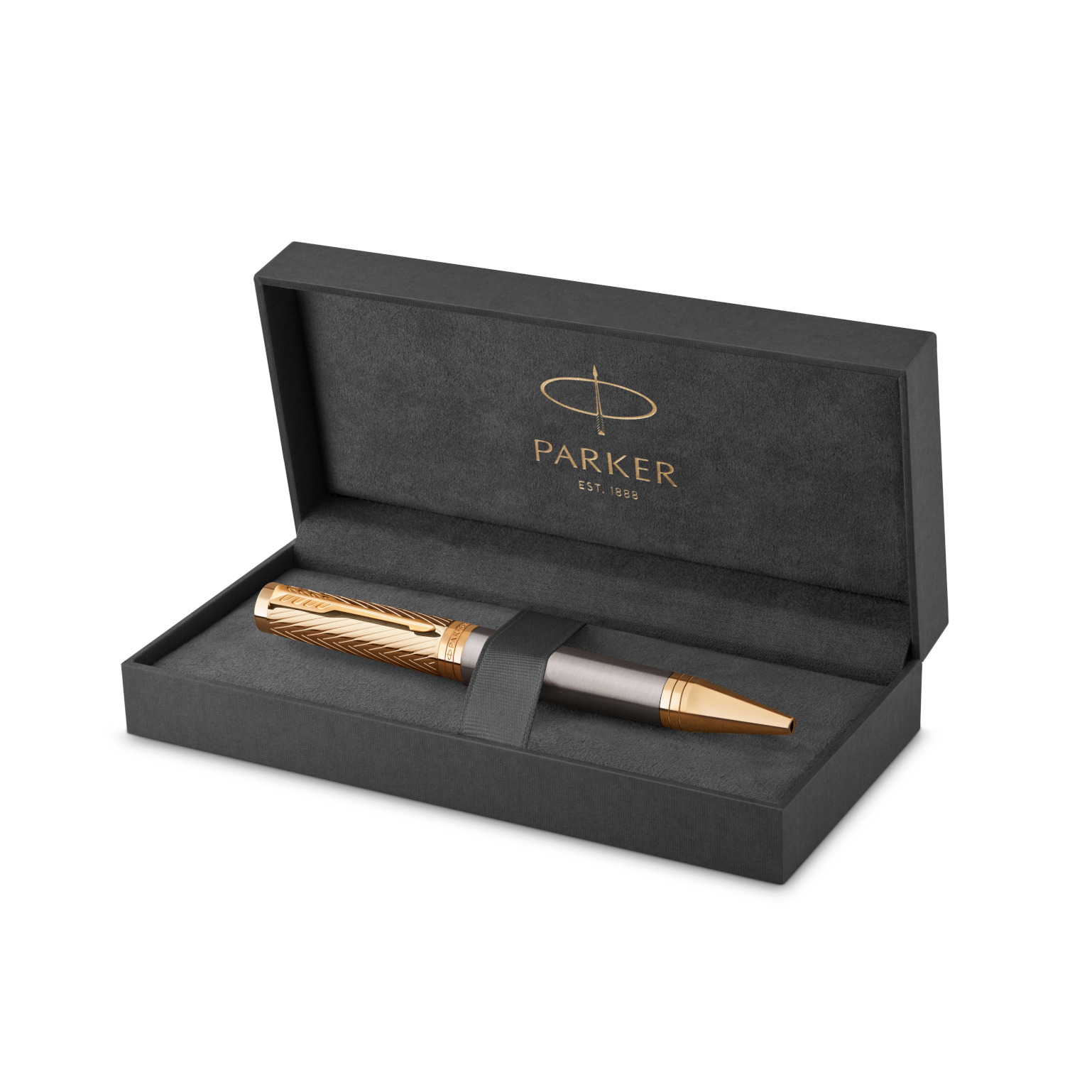 Stylo bille Parker Ingenuity Collection Parker Pioneers, Laque grise avec capuchon et finitions or, Pointe moyenne, Encre noire. Ancré dans les valeurs Parker, le capuchon délicatement gravé du Parker Pioneers fait écho à la fameuse flèche orientée vers le haut, symbole de l’état d’esprit avant-gardiste de George Parker et de son attitude de pionnier. Les finitions et le capuchon sont recouverts d’une finition PVD dorée avec un corps gris laqué. Finement ciselé à la main avec une grande précision, le stylo Ingenuity offre une expérience d’écriture assurée et véritablement exceptionnelle. Design de stylo bille, avec mécanisme de rétraction par rotation et pointe moyenne. Ce modèle Parker Ingenuity est présenté dans un prestigieux coffret cadeau Parker, avec un manchon rehaussé du fameux motif chevron. Outre l’Ingenuity, le coffret comprend également le livret de garantie. Passionné par sa quête, le pionnier est possédé d’une volonté inébranlable d’explorer et de repousser les limites. Animé d’un irrépressible besoin d’aller de l’avant, toujours plus loin et toujours plus vite, il cherche à atteindre le sommet dans tout ce qu’il entreprend. Pour aller encore plus loin. George Parker faisait partie de ces esprits pionniers. À seulement 25 ans, sa nature avant-gardiste l’a amené à fonder la société Parker Pen et à breveter son premier stylo plume sans fuites. Une volonté inébranlable qui motive encore l’amélioration constante des stylos Parker aujourd’hui, et qui a inspiré la collection Parker Pioneers composée des modèles Duofold classique, Sonnet, Ingenuity et Parker IM. Ancré dans les valeurs Parker, le capuchon délicatement gravé fait écho à la fameuse flèche orientée vers le haut, symbole de l’état d’esprit avant-gardiste de George Parker et de son attitude de pionnier. La collection Parker Pioneers rend hommage à l’esprit avant-gardiste de George ainsi qu’à tous ceux qui contribuent à faire avancer le monde. Votre instrument d’écriture Parker est garanti deux ans à compter de sa date d’achat originale contre les défauts de matériaux ou de fabrication. S’il s’avérait défectueux pendant la période de garantie, votre produit Parker sera réparé ou remplacé gratuitement.