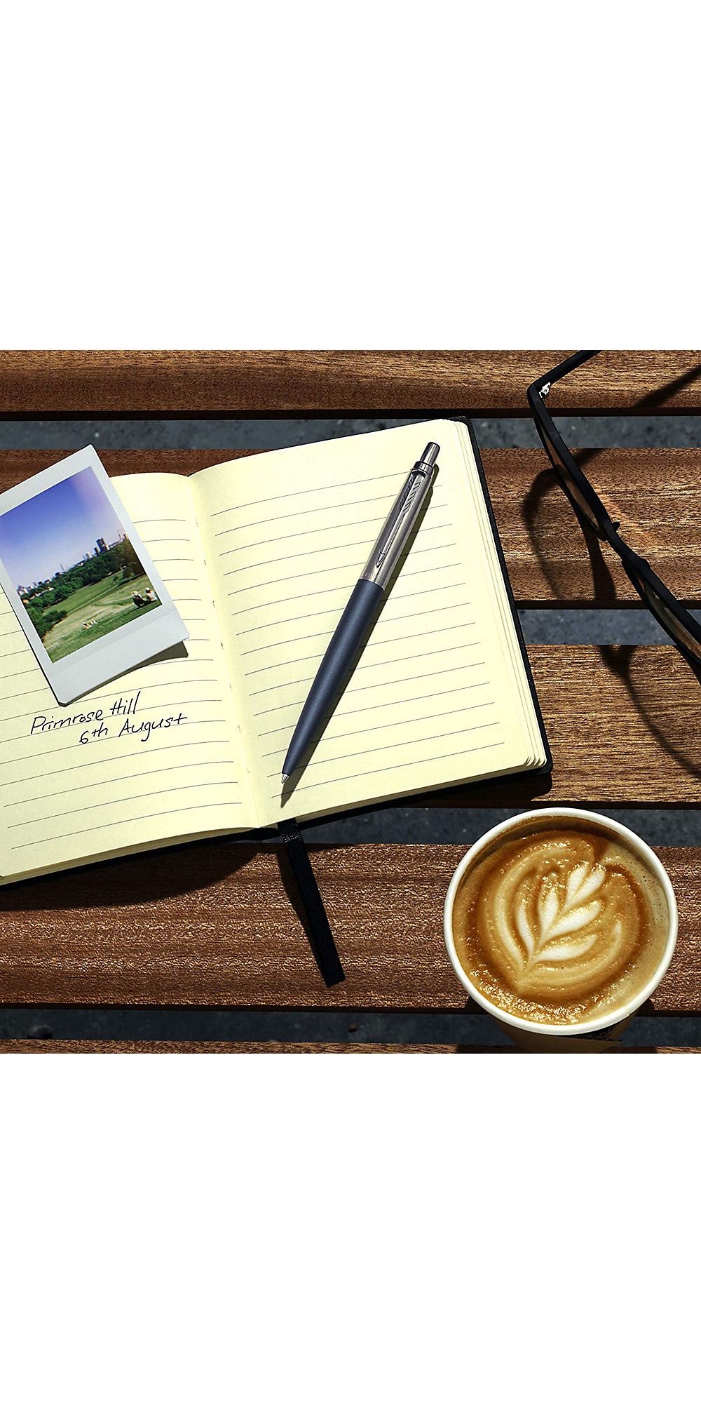 - Le Richmond Matte Blue possède toutes les caractéristiques essentielles de l’emblématique Jotter, mais il est plus grand. Inspiré de la silhouette des toits londoniens entre King Henry’s Mound et la cathédrale St-Paul.