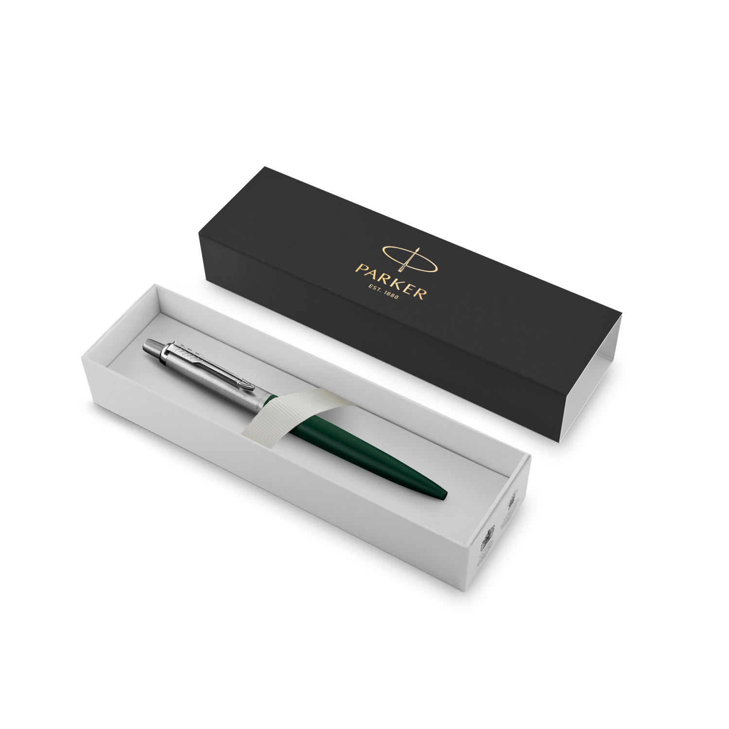 Goûtez la joie de la belle écriture et celle de prendre le temps de vous exprimer sur le papier avec le stylo-bille Parker Jotter XL. Doté des éléments de design emblématiques du Jotter, cette édition 7 % plus grande sera parfaite pour celles et ceux qui apprécient le confort d’un instrument d’écriture plus massif. Ce stylo à mécanisme de rétraction, d’un design qui le rend confortable en main, possède un corps et un capuchon en acier inox, des finitions à fort brillant et la célèbre agrafe Parker en forme de flèche. Le fini Greenwhich Matte Green s’inspire du panorama spectaculaire qui s’observe depuis la statue du général Wolfe du Greenwich Park jusqu’à la cathédrale St-Paul, avec la célèbre ligne des toits de l’est londonien en toile de fond. Présenté dans un coffret soigné, le Jotter XL fera un cadeau raffiné pour un jeune en fin d’études, un jeune à la recherche d’un premier emploi ou quiconque apprécie l’art de la belle écriture.