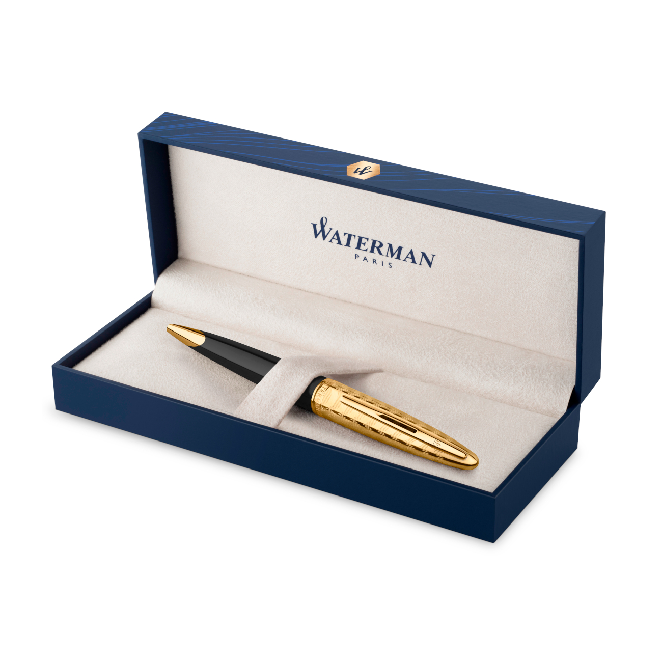 Les trésors d’artisanat grandioses de l’opéra inspirent le public depuis des siècles. C’est maintenant au tour de la collection Opera exclusive de Waterman. Les lignes arrondies raffinées du Carène et la laque noir intense de son corps s’accordent à la perfection avec son capuchon plaqué or exquis, au motif finement ciselé. La pointe du stylo bille, fabriquée avec un savoir-faire exceptionnel, produit des lignes impeccables qui sèchent rapidement et vient sublimer l’élégance sophistiquée du stylo.