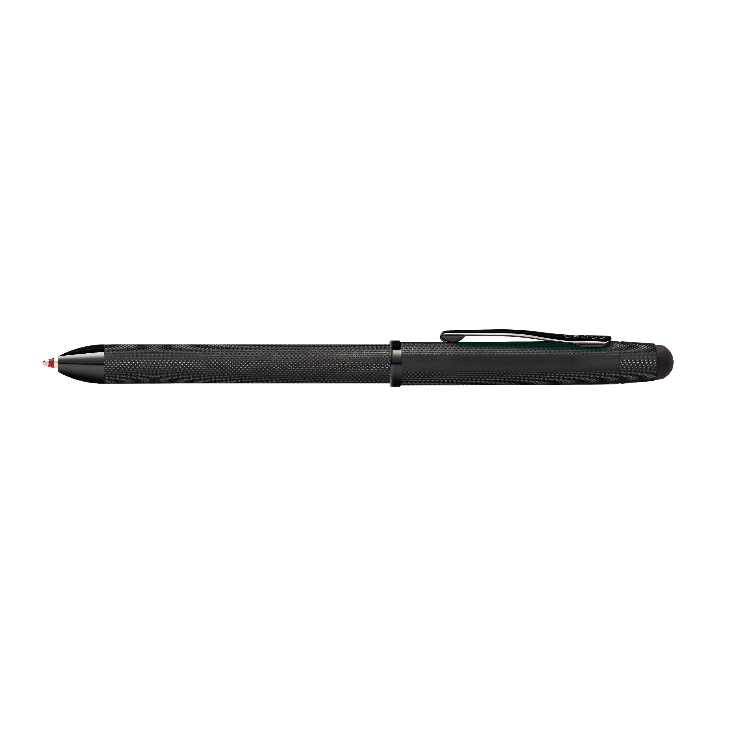 Une torsion sans effort transforme ce stylo à bille noir finement conçu en stylo à bille rouge, en stylo d'édition, en crayon, et inversement. À l'autre extrémité se trouve un stylet de précision pour améliorer la précision et la facilité lorsque vous interagissez avec votre appareil mobile préféré. Quel que soit votre choix de travail et de création, Tech3+ vous offre polyvalence, commodité et style.