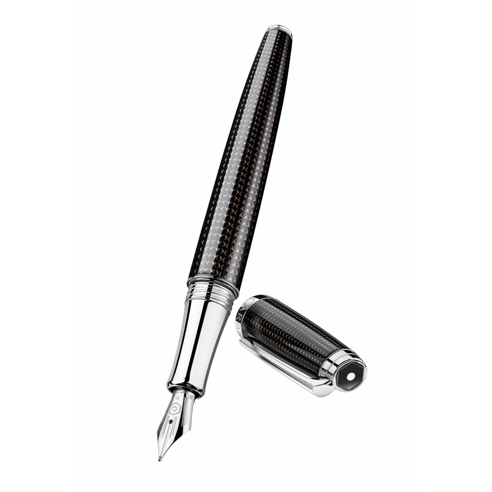 Corps et capuchon motif « clous de Paris » guilloché à lafraise puis recouverts d’une laque translucide noire. Bouton capuchon doté de la nouvelle identification