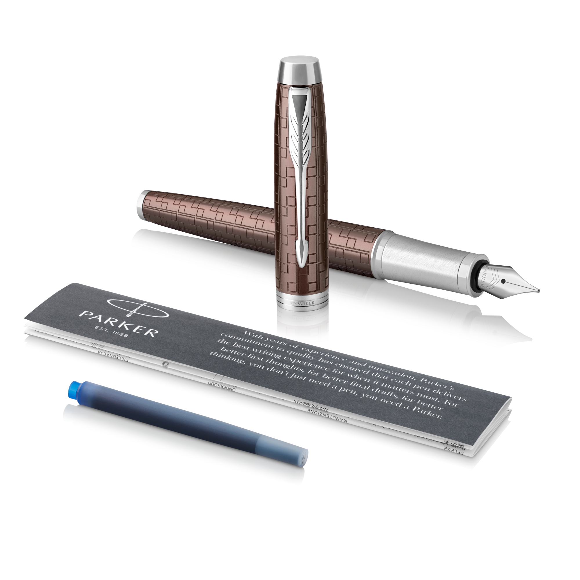 Fiable et professionnel, Parker IM est le partenaire idéal au potentiel illimité. A la fois intelligent, raffiné et constant il est constitué d'une plume acier résistante et d'un design qui reflète l'héritage Parker, chaque détail de cette collection permet d'offrir une expérience d'écriture à la fiabilité constante. IM Premium Brown, un stylo au décor ciselé d'un motif géométrique. Attributs chromés. Un stylo au rapport qualité prix exceptionnel. Plume de taille fin extrèmement nerveuse qui procure un très grand plaisir d'écriture.