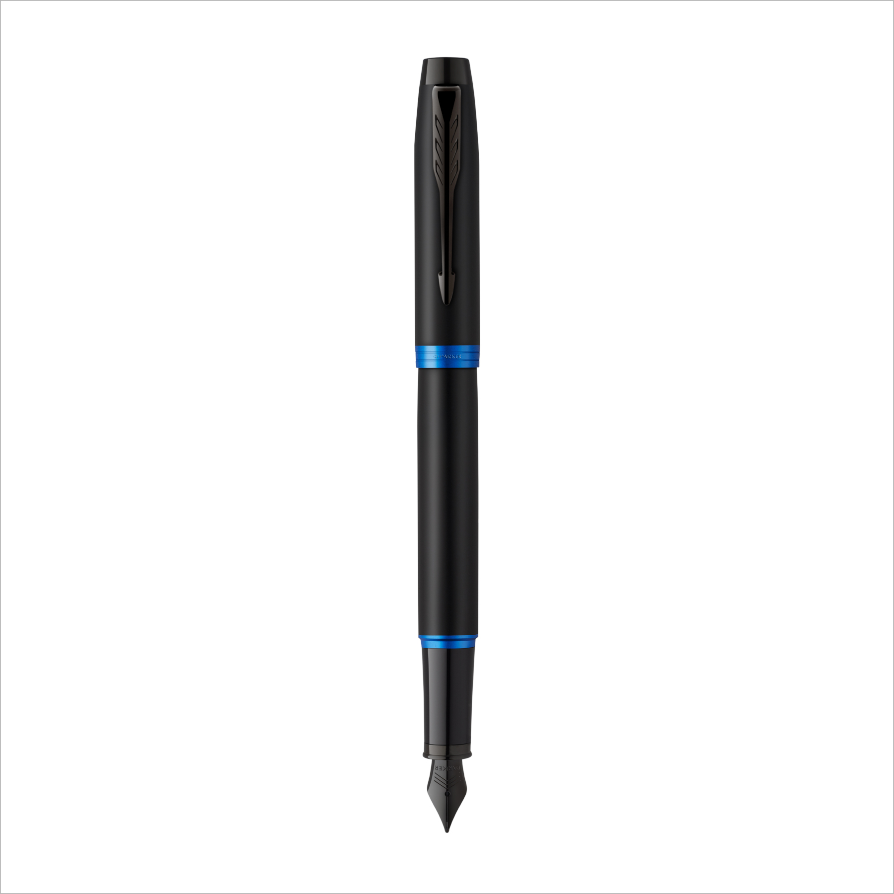 • Stylo Parker avec finitions noir intégral et bagues bleu océan