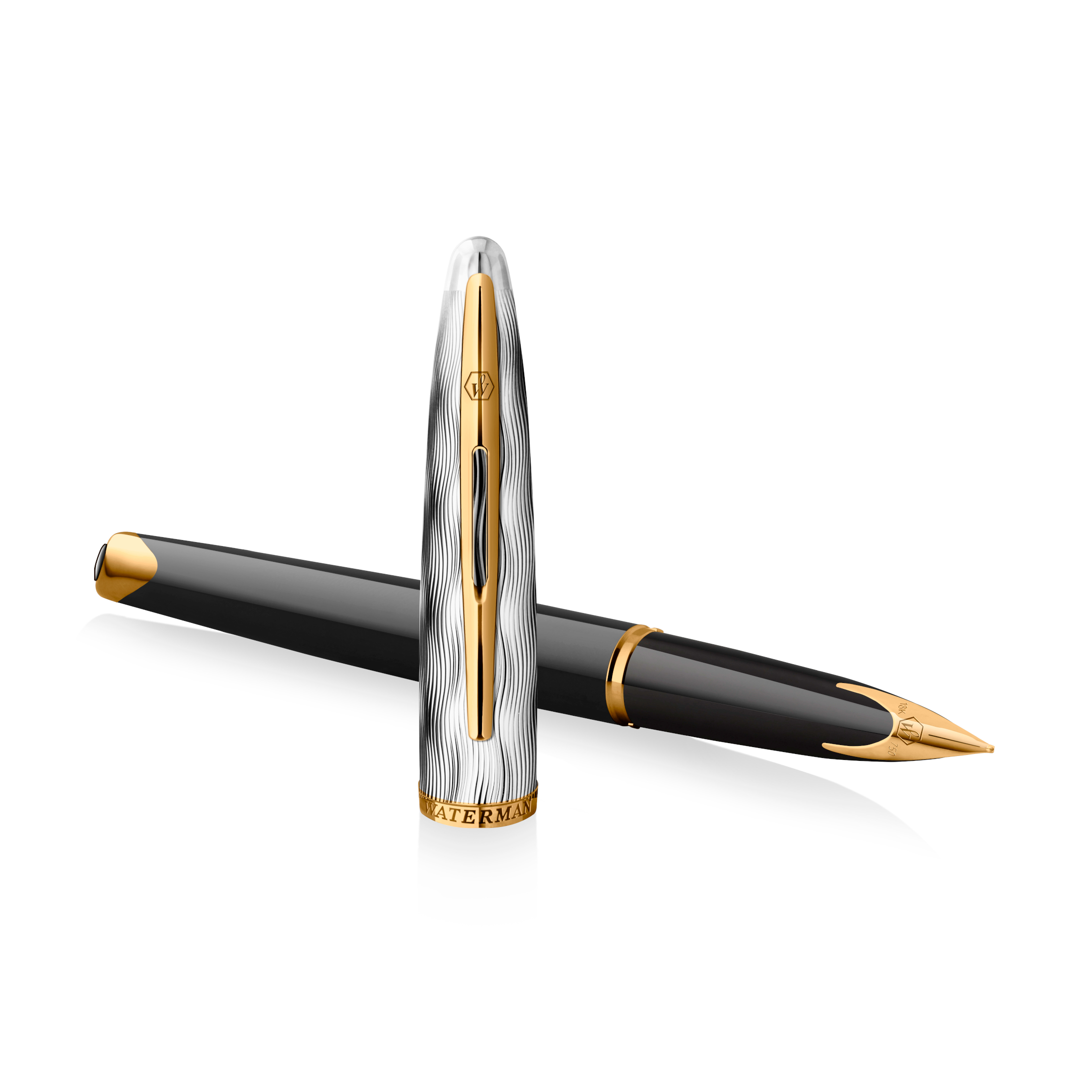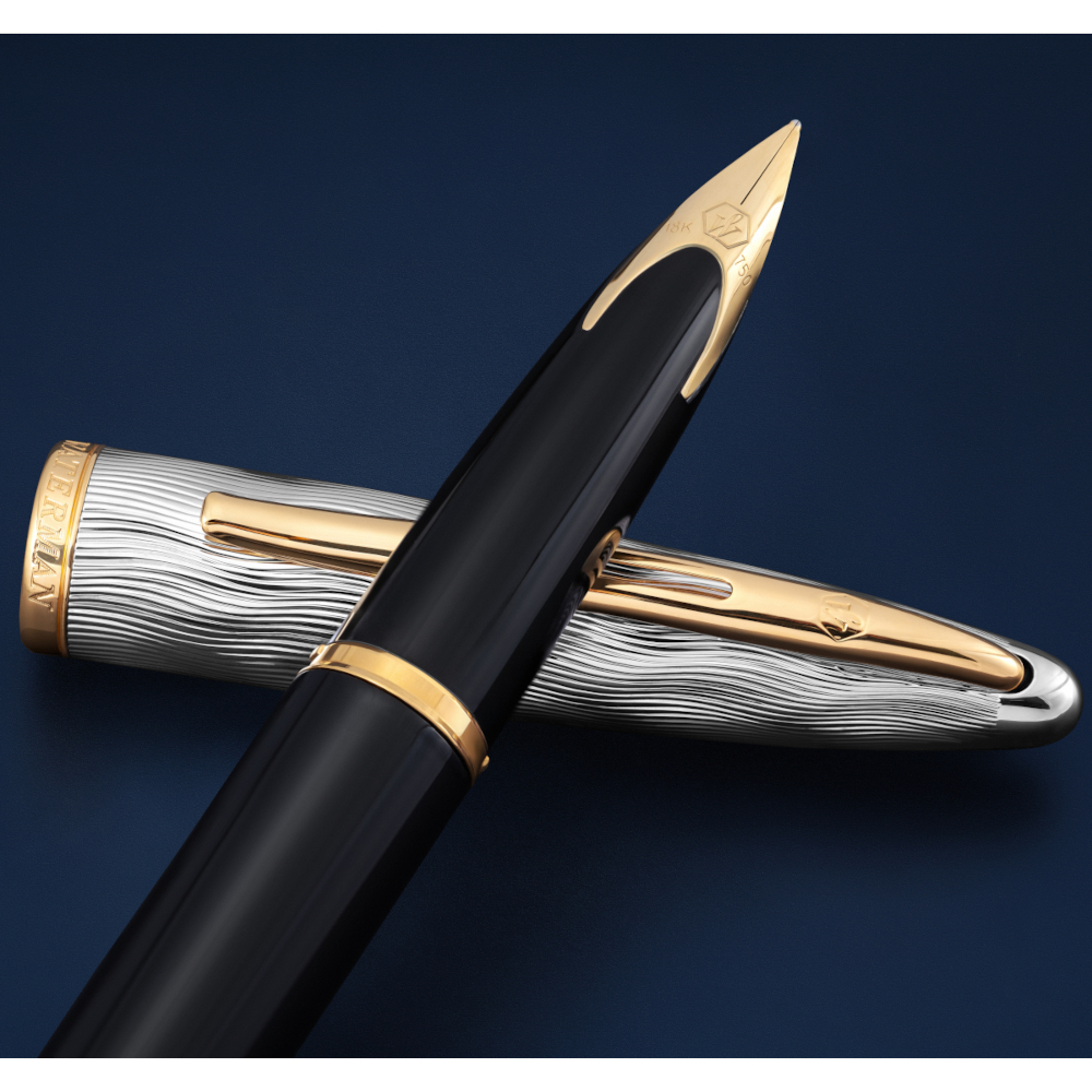 • Le logo hexagonal distinctif de Waterman ornant la plume intégrée en or 18 carats vient sublimer l’élégance sophistiquée du stylo plume.