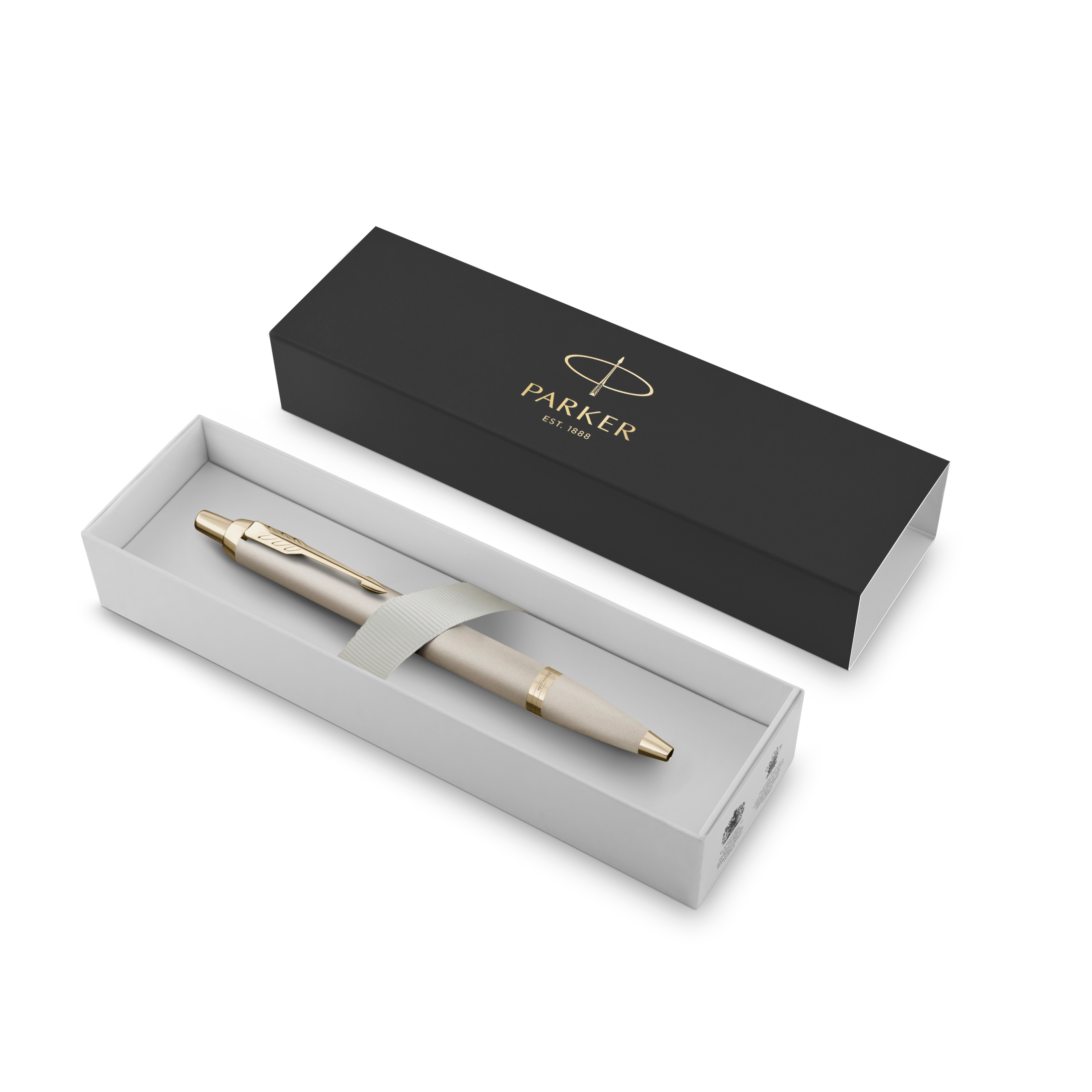 Fonctionnel, élégant et emblématique, le stylo bille Parker IM a été conçu dans un esprit moderne et professionnel qui ne passera pas inaperçu au travail. Finement travaillés, les stylos monochromes Parker IM au corps tout en métal offrent une sensation de luxe à chaque utilisation. Le design champagne monochrome, de la finition à la pointe, leur confère une élégance incomparable. Fruit de plus d’un siècle de savoir-faire et d’expérience, ce stylo Parker est orné d’éléments métalliques exclusifs recouverts d’un revêtement PVD, pour une résistance optimale à l’usure et à la corrosion complétée par une allure distinctive. Ce stylo bille moderne est compatible avec les recharges Quinkflow pour stylo bille, pour une écriture nette et régulière, idéale au quotidien. Présenté dans un élégant étui cadeau Parker, le stylo monochrome Parker IM fera un cadeau absolument inoubliable.