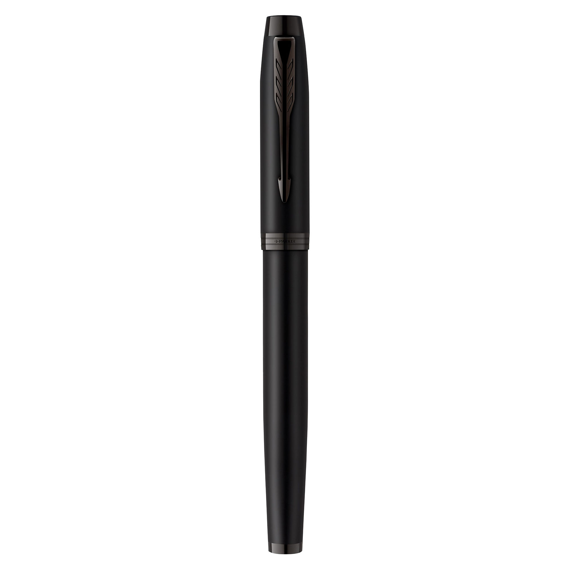 - Stylo Parker au design achromatique noir mat, des bordures à la plume