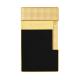 Inspiré de ses archives et de l'iconique Ligne 2, S.T. Dupont propose un briquet de table innovant avec son grand volume et son système de double flamme. Une pièce sans équivalent dans l’univers du luxe. Briquet de table en laque noire brillante, décoré d'un chapeau en guilloche pointe de diamant. Gâchette avec mécanisme de glissement et de pression pour alterner entre flamme jaune résistante au vent et flamme torche. Finition dorée.  Dimensions :115 x 65 x 24 mm , Matière : zamac, Poids : 325 g,